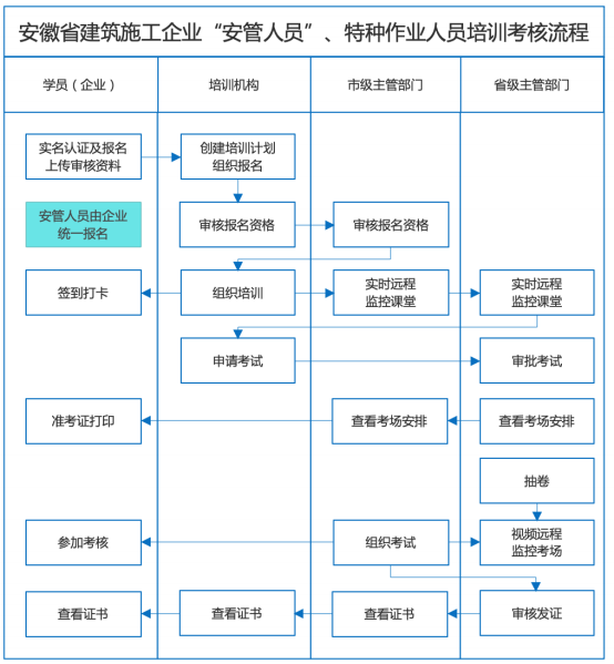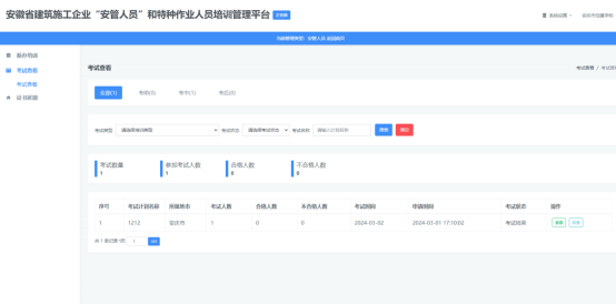 企业可以查看本企业所有安管人员新培考试的详情,包含考前, 考中,考后相应状态。