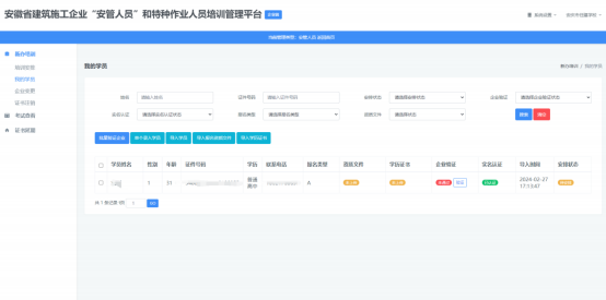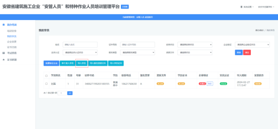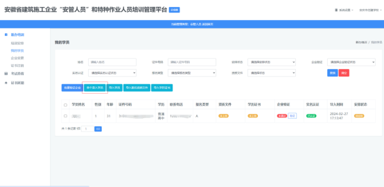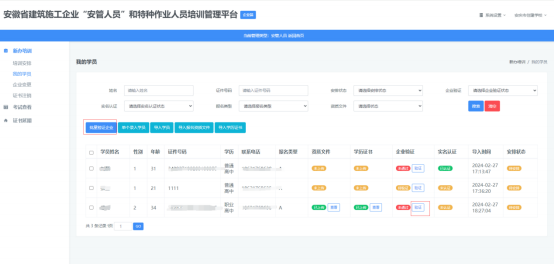 所有导入的学员均需验证为本企业学员,导入成功后在列表点击 验证即可;