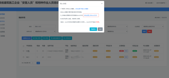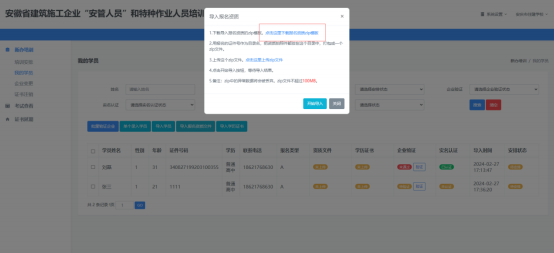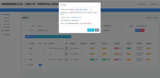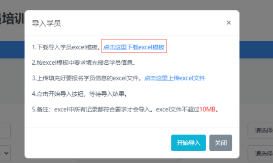 点击下载导入模板,在模板中按照要求填写学员信息。(请仔细阅 读导入说明)
