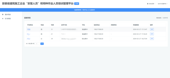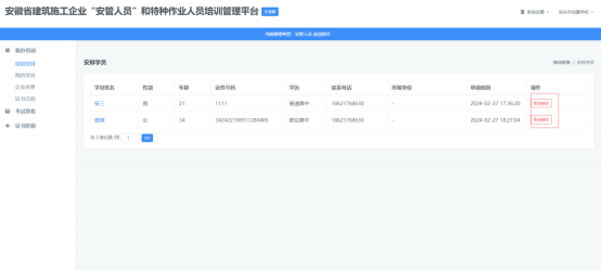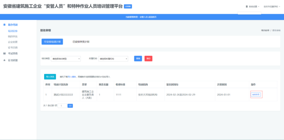 企业安排学员后可在此页面查看已安排的学员。点击查看学员即 可看到计划安排的学员详情。