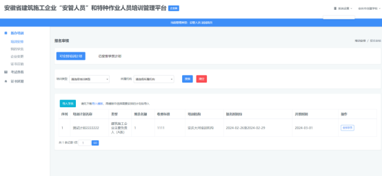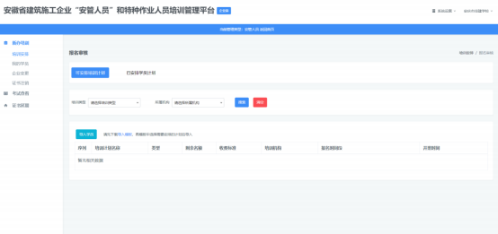当本企业所属地市的培训机构开展了培训计划报名, 且还有剩余 名额的时候,即可在此页面查看到该培训计划。