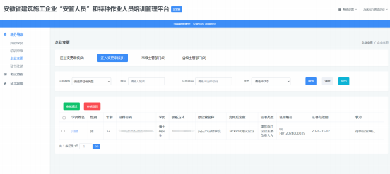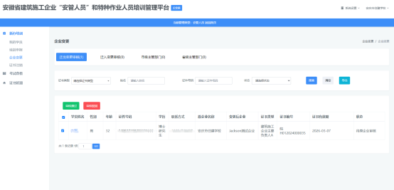 用户在小程序端申请企业变更后, 由新企业提交变更申请至原企 业确认,新企业在迁入变更审核审核中进行确认,审核通过后,再由 原企业审核确认,通过后再经省地市主管部门审核即可完成变更。
