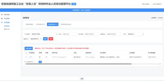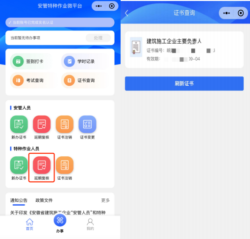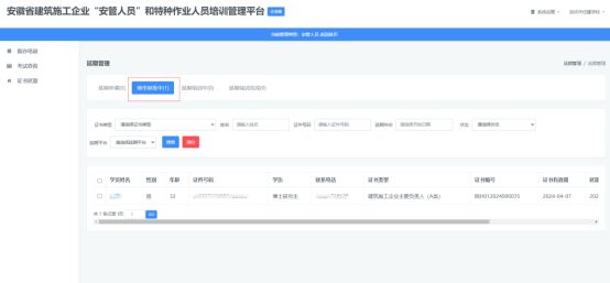 学员在小程序端申请证书延期,企业进行确认和缴费操作。