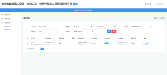 企业缴费后管理缴费订单,如退款,发票开具,重新缴费等。